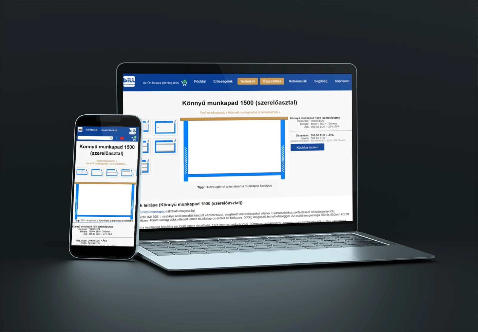 • Egyszerű adminisztrációs felület a termékek kezelésére